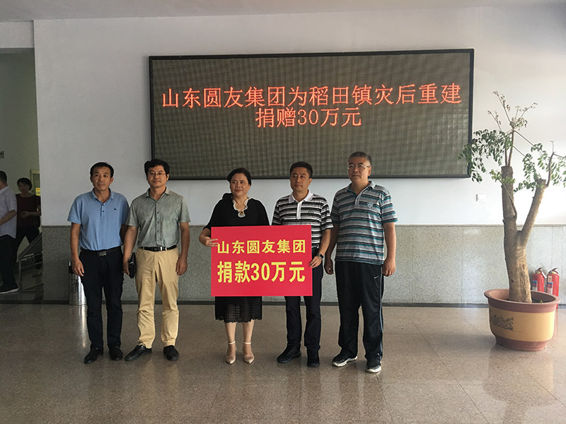 天災無情人有情。壽光市受災的消息,牽動了山東圓友集團廣大職工的心,他們時刻關注著抗洪救災信息的進展。“一方有難、八方支援”,歷來是中華民族的優良傳統。為幫助壽光人民戰勝困難,山東圓友集團積極參與到抗洪救災當中,幫助他們戰勝困難、恢復生產,為重建家園盡一份力。他們積極發動員工,不計得失,陸續組織抗洪救災捐款,為災區人民奉獻愛心,全體員工也積極響應,踴躍參加。9月4日,山東圓友集團執行董事董興梅等一行4人,代表企業來到壽光市稻田鎮人民政府,向該鎮捐贈人民幣30萬元,以幫助他們恢復生產、重建家園。